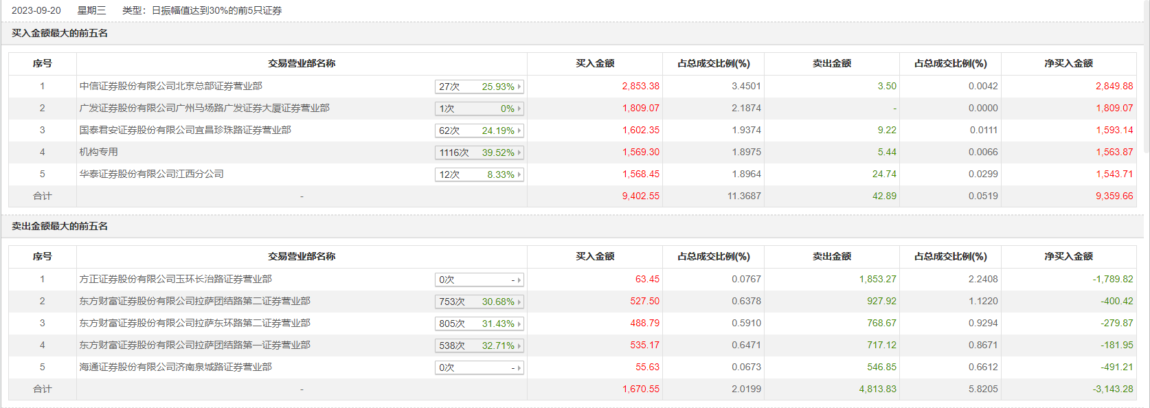 具体来看,机构买入1569.3万元,卖出5.44万元,合计净买入1563.87万元。此外,中信证券北京总部证券营业部、广发证券广州马场路广发证券大厦证券营业部分别买入2853.38万元、1809.07万元;方正证券玉环长治路证券营业部、东方财富证券拉萨团结路第二证券营业部分别卖出1853.27万元、927.92万元。
