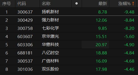 A股光刻胶概念震荡走低 扬帆新材跌超9%