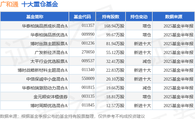 根据2025基金半年报公募基金重仓股数据,重仓该股的公募基金共14家,其中持有数量最多的公募基金为华泰柏瑞基金的华泰柏瑞品质成长混合A。华泰柏瑞品质成长混合A目前规模为11.78亿元,最新净值0.762(9月25日),较上一交易日上涨0.08%,近一年上涨44.95%。该公募基金现任基金经理为沈雪峰。沈雪峰在任的基金产品包括:华泰柏瑞激励动力混合A,管理时间为2020年6月30日至今,期间收益率为4.1%;华泰柏瑞品质优选A,管理时间为2020年8月28日至今,期间收益率为-12.1%;华泰柏瑞优势领航混合A,管理时间为2020年9月24日至今,期间收益率为-11.83%;