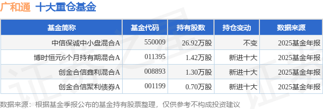 重仓广和通的公募基金请见下表: