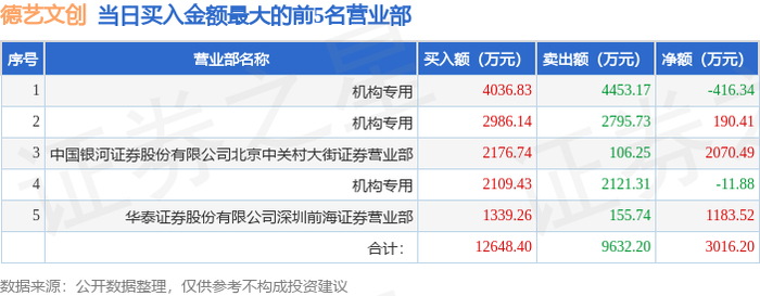 12月19日德艺文创(300640)龙虎榜数据:游资北京中关村上榜