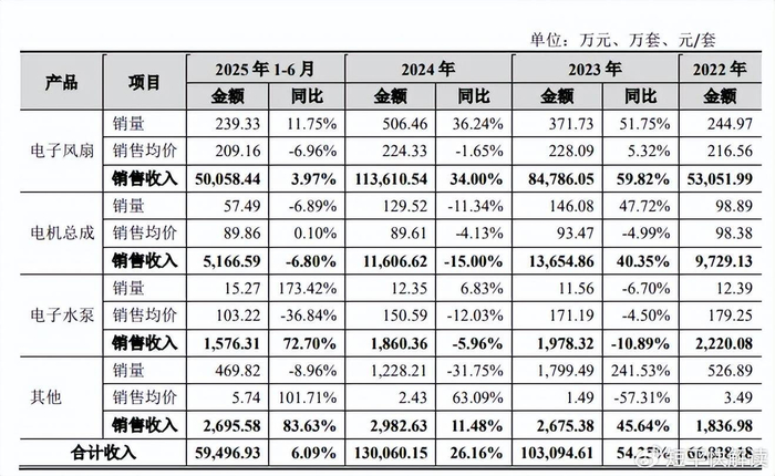 据回复,2022年至2024年,整车市场销量放缓,公司主要产品销量有所下降,同时叠加年将政策影响,销售均价持续下滑,因此增长率有所下滑,去年上半年销售虽然有所增加,但受年降幅度较大的影响,电子风扇销售均价下降较多,因此收入增长率持续下降。
