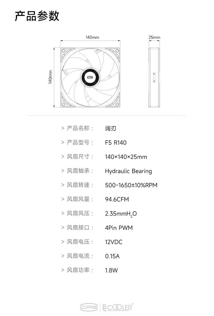 超频三推出“阔刃F5 R140”14025规格散热风扇,79元