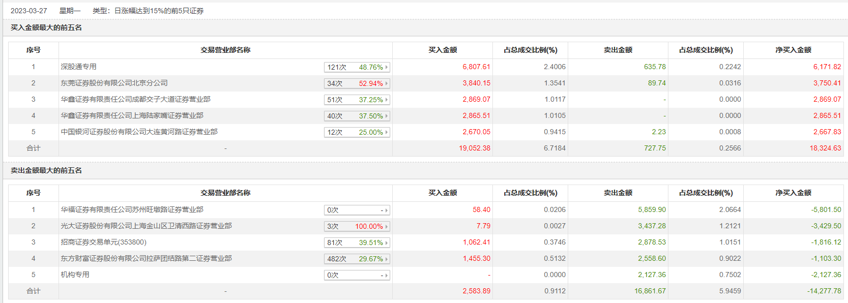 今日涨停,成交额28.36亿元,换手率22.71%,盘后龙虎榜数据显示,深股通买入6807.61万元并卖出635.78万元,1家机构净卖出2127.36万元。