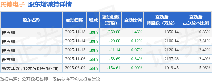 11月20日民德电子现1笔折价15.3%的大宗交易 合计成交306.02万元