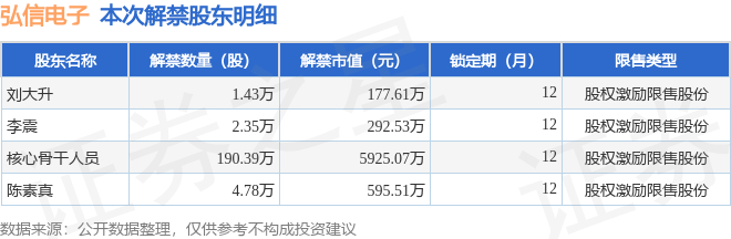 弘信电子(300657)198.96万股限售股将于10月31日解禁,占总股本0.41%