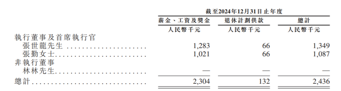 2024年,张世龙、张勤薪酬分别为134.9万元、108.7万元。