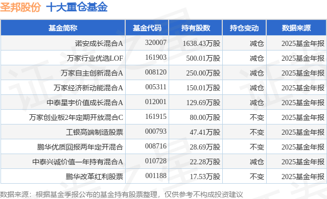 重仓圣邦股份的前十大公募基金请见下表: