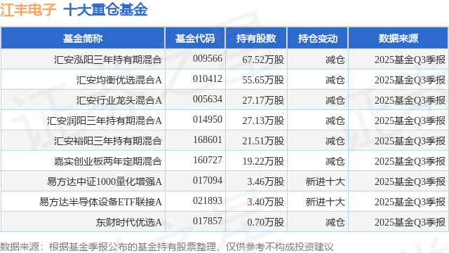 重仓江丰电子的公募基金请见下表: