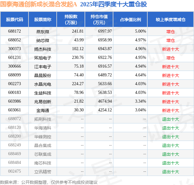 国泰海通创新成长混合发起A的前十大重仓股如下: