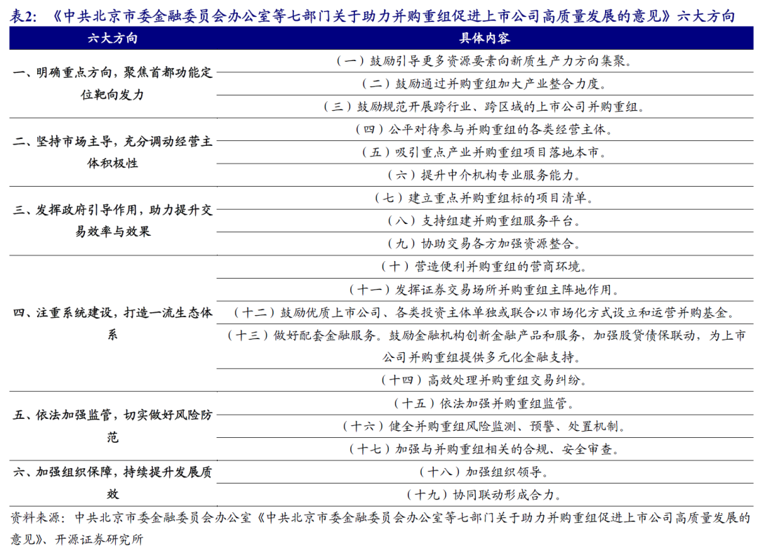 北京市《助力并购重组促进上市公司高质量发展的意见》
