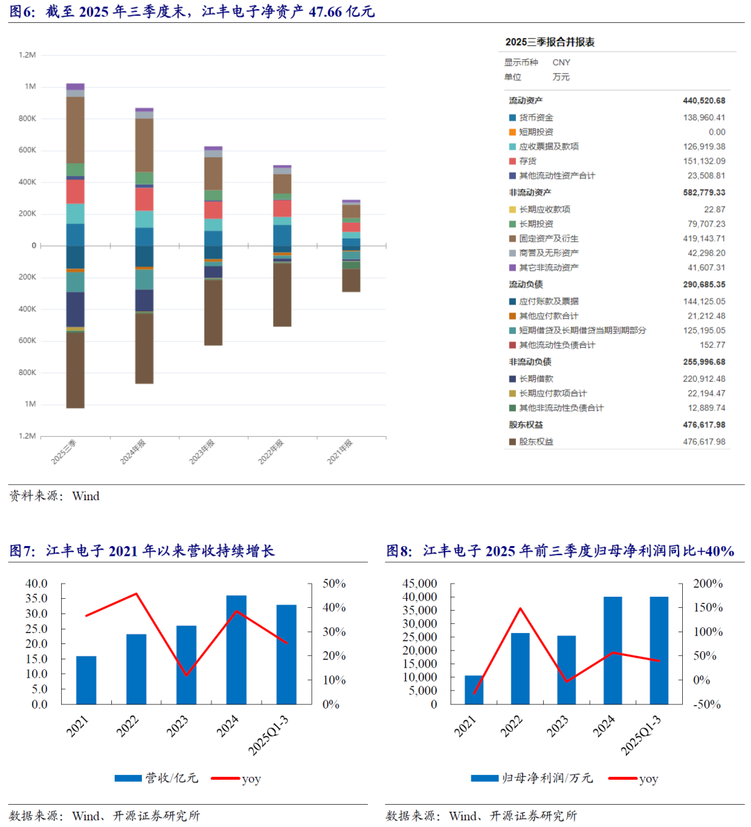 根据业绩快报,2025年实现营收46.05亿元,同比增长27.75%;归母净利润4.81亿元,同比增长20.15%。2025年度,受益于人工智能、5G通信、云计算、机器人、交通运输等下游需求的持续增长,全球晶圆及芯片产量相应提升,并不断向先进制程方向发展,带动了公司超高纯金属溅射靶材的收入增长。同时,经过多年布局,公司半导体精密零部件基地已陆续投产,半导体精密零部件产品线迅速拓展,另外得益于供应链本土化进程的加速,公司第二增长曲线半导体精密零部件产品持续放量。目前黄湖靶材工厂主体工程建设顺利、设备正逐步入驻调试,为靶材业务的增长、更好地服务客户夯实基础。