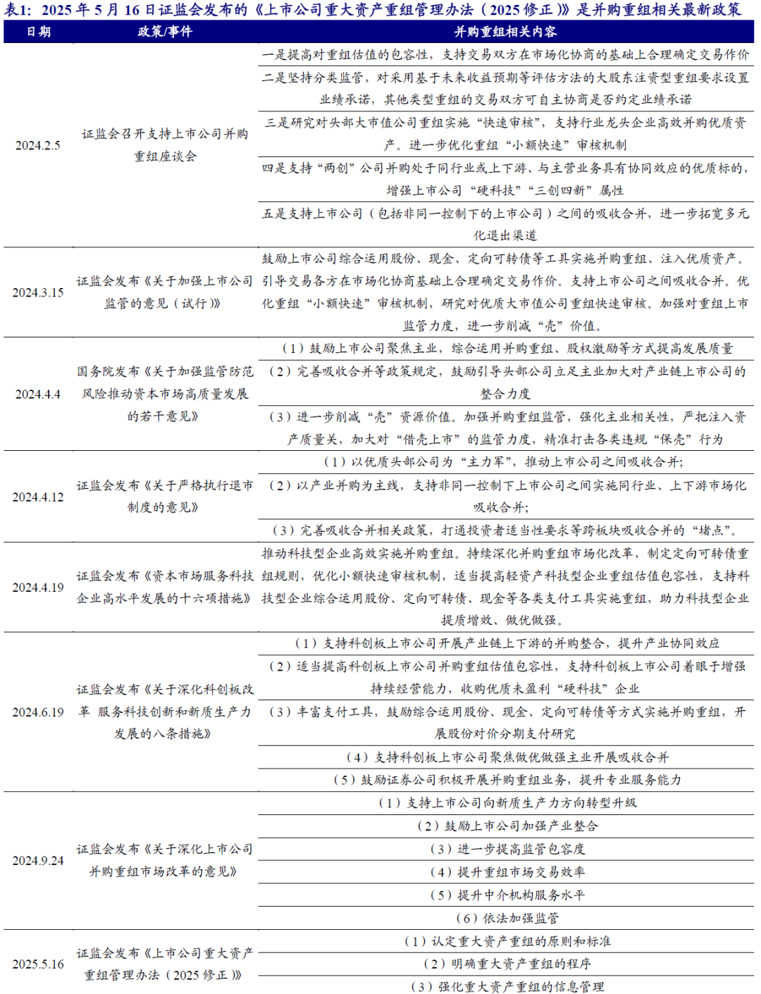 自2024年起,并购重组市场迎来了诸多积极信号。从新“国九条”到“并购六条”,尤其是2024年9月26日中共中央政治局会议明确提出要支持上市公司开展并购重组,一系列力度大且针对性强的政策密集出台。这些政策确立了以产业整合为核心的上市公司并购逻辑,推动审核机制不断优化,朝着“小额快速”和“提高包容度”的方向发展。这不仅激发了资本市场的活力,还为产业发展注入了新的动力。在地方层面,政策的引导作用也十分明显。多个省市纷纷出台相关措施,加大对本地企业并购重组的支持力度。地方国资成立并购基金的步伐也在加快。并购重组正逐渐成为地方政府提升资产证券化率的重要手段。
