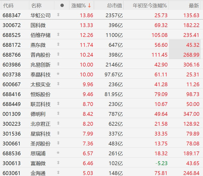 A股半导体股集体拉升,华虹公司、国科微涨13%