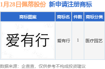 佩蒂股份新提交“爱有行”商标注册申请