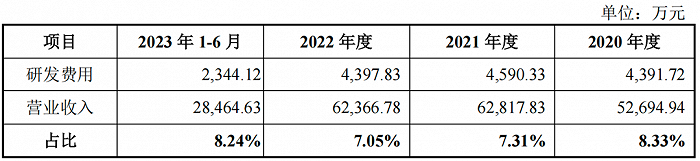 报告期内,易诚互动的研发费用分别为4391.72万元、4590.33万元、4397.83万元、2344.12万元,占当期营业收入的比例分别为8.33%、7.31%、7.05%、8.24%。