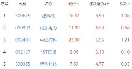 其中,建科院、闽东电力、中远海科、*ST正邦、恒华科技位列板块涨幅前五位,涨幅分别为6.94%、6.53%、5.55%、5.10%、4.77%。