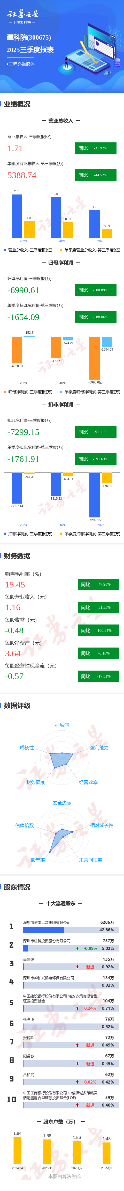 图解建科院三季报:第三季度单季净利润同比下降188.06%