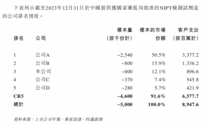 值得一提的是,NIPT是目前IVD市场中最成熟的业务之一,往往一个地区只招投标一家厂家服务,且替代成本较高。根据招股书显示,截至2023年末于中国提供获国家药监局批准的NIPT检测试剂盒的公司中,排名前三的市场份额分别为50.5%、15.9%和12.1%,安诺优达的样本市场份额排名第三。