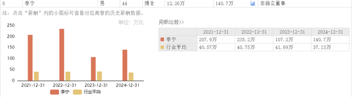 据东方财富网数据,李宁2024年从华大基因所获薪酬为140.7万元,相较上年薪酬107.2万元涨薪31.25%。
