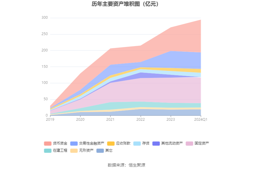 资产重大变化方面,截至2024年一季度末,公司货币资金较上年末增加39.29%,占公司总资产比重上升7.48个百分点;其他流动资产较上年末减少83.77%,占公司总资产比重下降2.78个百分点;交易性金融资产较上年末减少3.01%,占公司总资产比重下降2.10个百分点;固定资产较上年末增加1.65%,占公司总资产比重下降1.87个百分点。