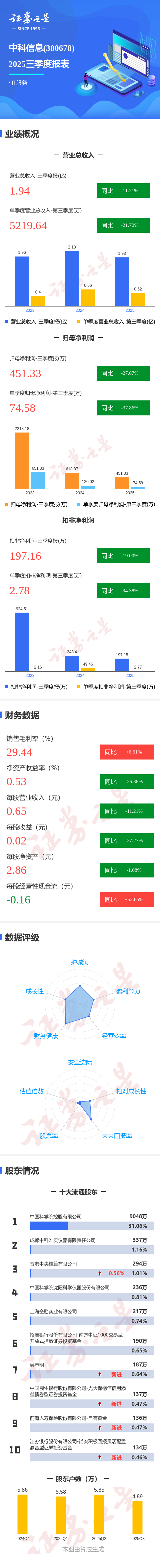 图解中科信息三季报:第三季度单季净利润同比下降37.86%