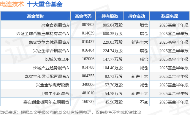重仓电连技术的前十大公募基金请见下表: