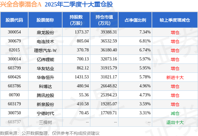 兴全合泰混合A的前十大重仓股如下: