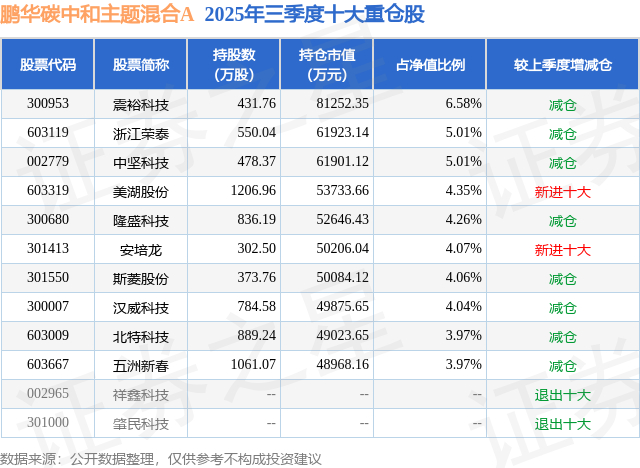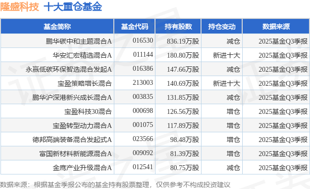重仓隆盛科技的前十大公募基金请见下表: