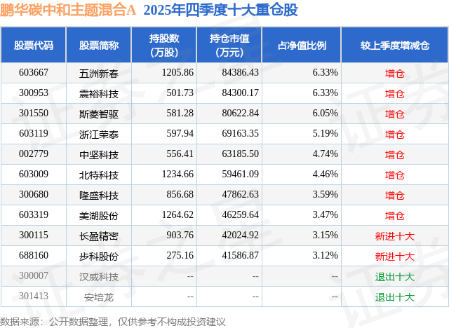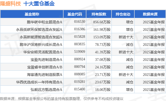 重仓隆盛科技的前十大公募基金请见下表: