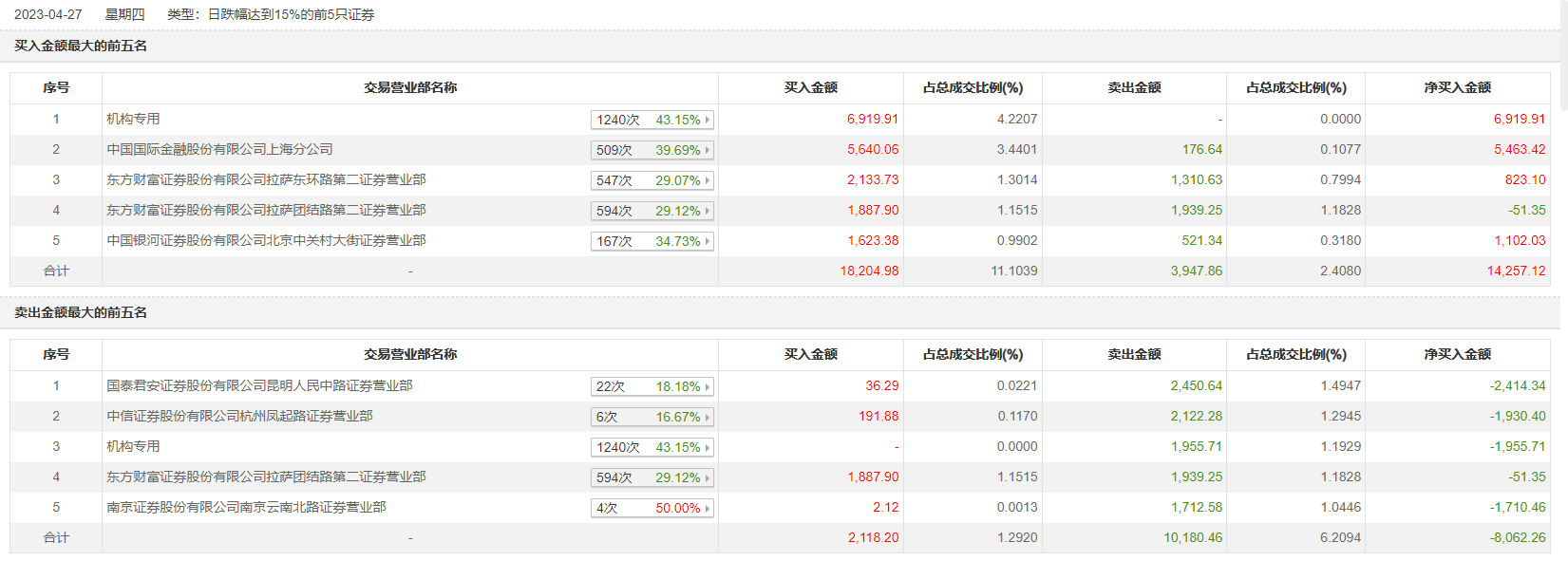 4月27日,中石科技今日跌停,龙虎榜数据显示,上榜营业部席位全天成交3.06亿元,占当日总成交金额比例为18.68%。其中,买入金额为1.84亿元,卖出金额为1.22亿元,合计净买入6246.2万元。