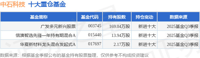 根据2025基金Q3季报公募基金重仓股数据,重仓该股的公募基金共3家,其中持有数量最多的公募基金为广发基金的广发多元新兴股票。广发多元新兴股票目前规模为22.9亿元,最新净值1.9151(12月19日),较上一交易日上涨0.44%,近一年上涨25.86%。该公募基金现任基金经理为周智硕。周智硕在任的基金产品包括:广发稳健增长混合A,管理时间为2025年8月28日至今,期间收益率为4.95%;广发行业严选三年持有期混合A,管理时间为2025年9月13日至今,期间收益率为-9.02%。