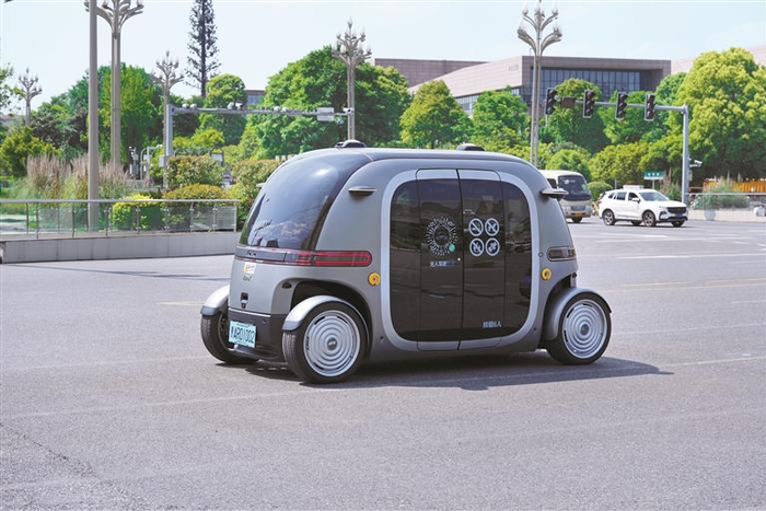 无人驾驶小巴在花溪大学城专线上行驶。 喻义昌 摄(影像贵州)