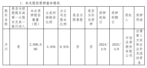 截至目前,方兴持有盛弘股份股票的数量为5798.73万股,其中780万股被质押。盛弘股份表示,此次股份质押事项不会对公司生产经营、公司治理等产生影响;方兴先生不存在非经营性资金占用、违规担保等侵害上市公司利益的情形。