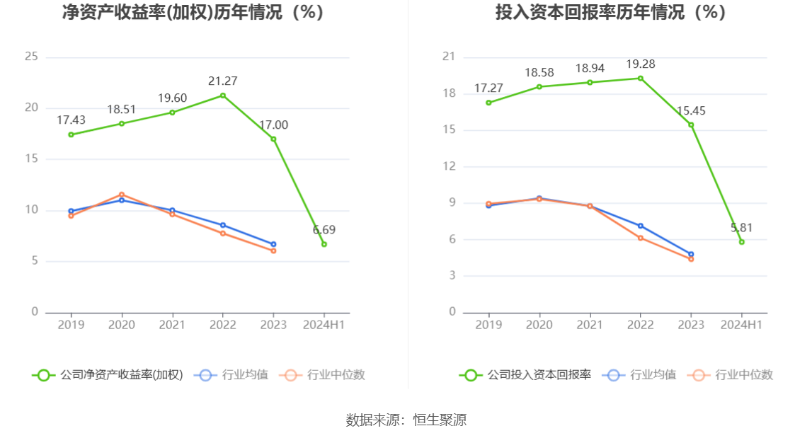 在偿债能力方面,公司2024年上半年末资产负债率为23.94%,相比上年末上升2.29个百分点;有息资产负债率为7.01%,相比上年末上升3.81个百分点。