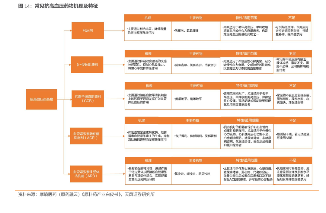 沙坦类药物是目前高血压治疗领域的主流产品。沙坦类药物通过选择性阻断血管紧张素受体来降血压,是国内外权威指南推荐的一线治疗药物,包括氯沙坦、缬沙坦、厄贝沙坦等品种。在所有抗高血压药物中,因其临床疗效确切,副作用小,耐受性好,可用于心力衰竭、糖尿病、肾病患者等诸多优势,愈加受到医生和患者的青睐,用药规模持续增加。