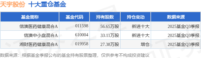 重仓天宇股份的公募基金请见下表: