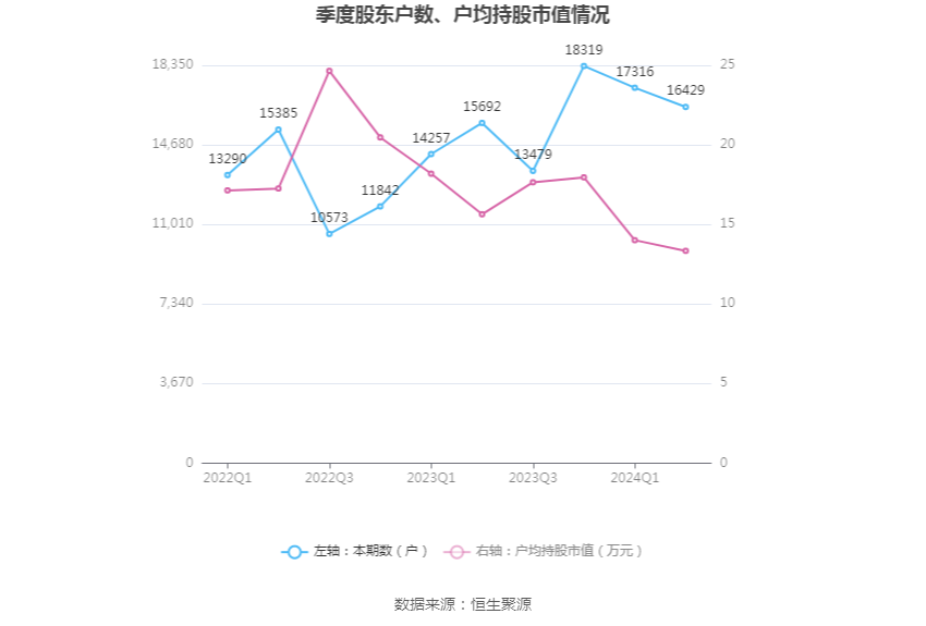 筹码集中度方面,截至2024年上半年末,公司股东总户数为1.64万户,较一季度末下降了887户,降幅5.12%;户均持股市值由一季度末的14.01万元下降至13.34万元,降幅为4.78%。