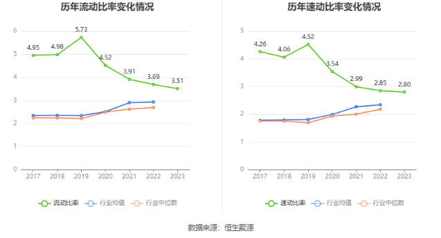 2023年,公司流动比率为3.51,速动比率为2.80。