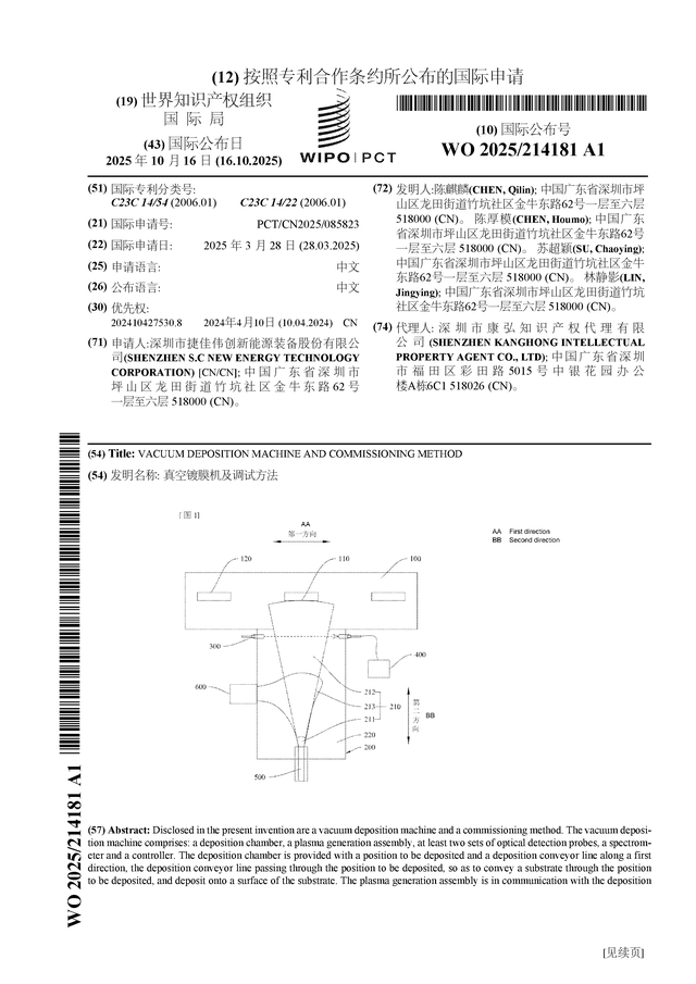 捷佳伟创公布国际专利申请:“真空镀膜机及调试方法”