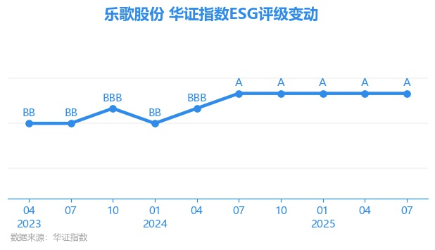 日前,华证指数公布了新一期(2025年7月31日)的ESG评级结果,乐歌股份(300729.SZ)获得A评级(华证指数评级为C起至AAA九档,C为最低档,AAA为其最高一级评级/AA为其第二档),上一期(2025年4月30日)ESG评级为A。本期ESG评级在147家家庭耐用消费品行业A股上市公司中排名第7(上一期排名第8)。