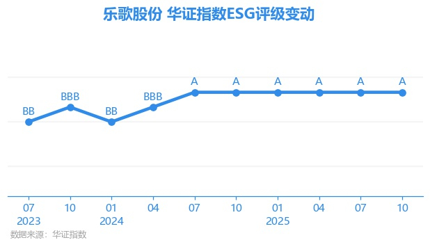 日前,华证指数公布了新一期(2025年10月31日)的ESG评级结果,乐歌股份(300729.SZ)获得A评级(华证指数评级为C起至AAA九档,C为最低档,AAA为其最高一级评级/AA为其第二档),上一期(2025年7月31日)ESG评级为A。本期ESG评级在148家家庭耐用消费品行业A股上市公司中排名第4(上一期排名第7)。