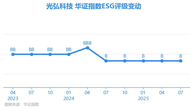 日前,华证指数公布了新一期(2025年7月31日)的ESG评级结果,光弘科技(300735.SZ)获得B评级(华证指数评级为C起至AAA九档,C为最低档,AAA为其最高一级评级/AA为其第二档),上一期(2025年4月30日)ESG评级为B。本期ESG评级在529家电子设备、仪器和元件行业A股上市公司中排名第330(上一期排名第370)。