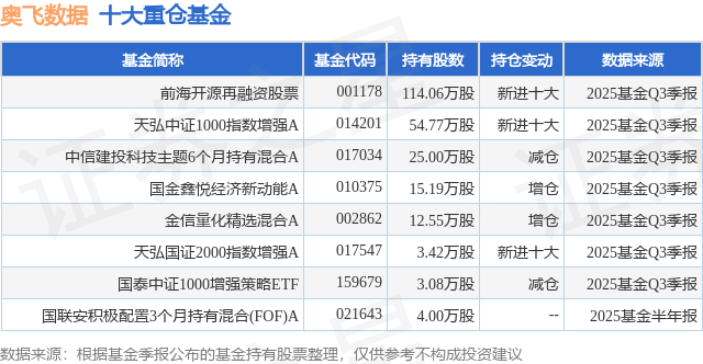 重仓奥飞数据的公募基金请见下表: