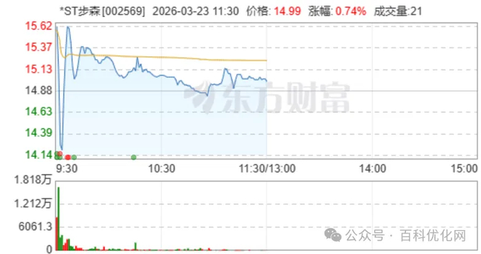 3月23日早盘,A股退市风险警示股*(002569.SZ)上演了一场惊心动魄的股价异动。复牌仅7分钟,该股便完成从跌停到涨停的"天地天板"反转,盘中振幅高达9.95%,截至上午收盘,股价微涨0.74%,换手率5.09%,成交额达1.09亿元。投资参考网记者注意到,这场股价狂欢背后,是市场对公司易主后业务转型的强烈预期,而公司紧急澄清的股权关系疑云,更让这场保壳攻坚战充满看点。