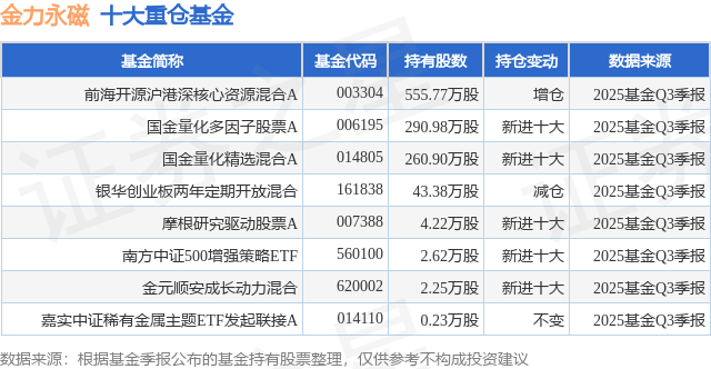 重仓金力永磁的公募基金请见下表: