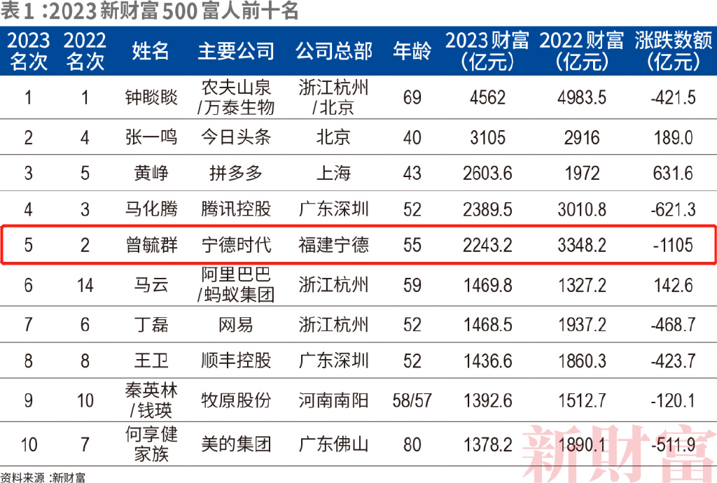 宁德时代创始人曾毓群,身家剧减1100亿元。