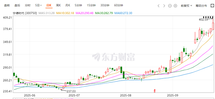 宁德时代(300750.SZ)近期重拾涨势,并创下了上市以来新高。