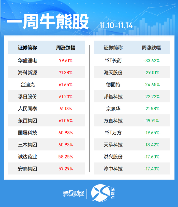 牛熊股:11股周涨超50%,最牛股周涨近80%