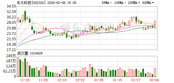 值得注意的是,2月6日午后,永太科技股价直线拉升,截至当日收盘,永太科技涨10.02%报28.77元/股,总市值266亿元。